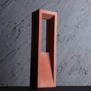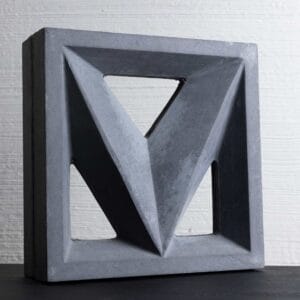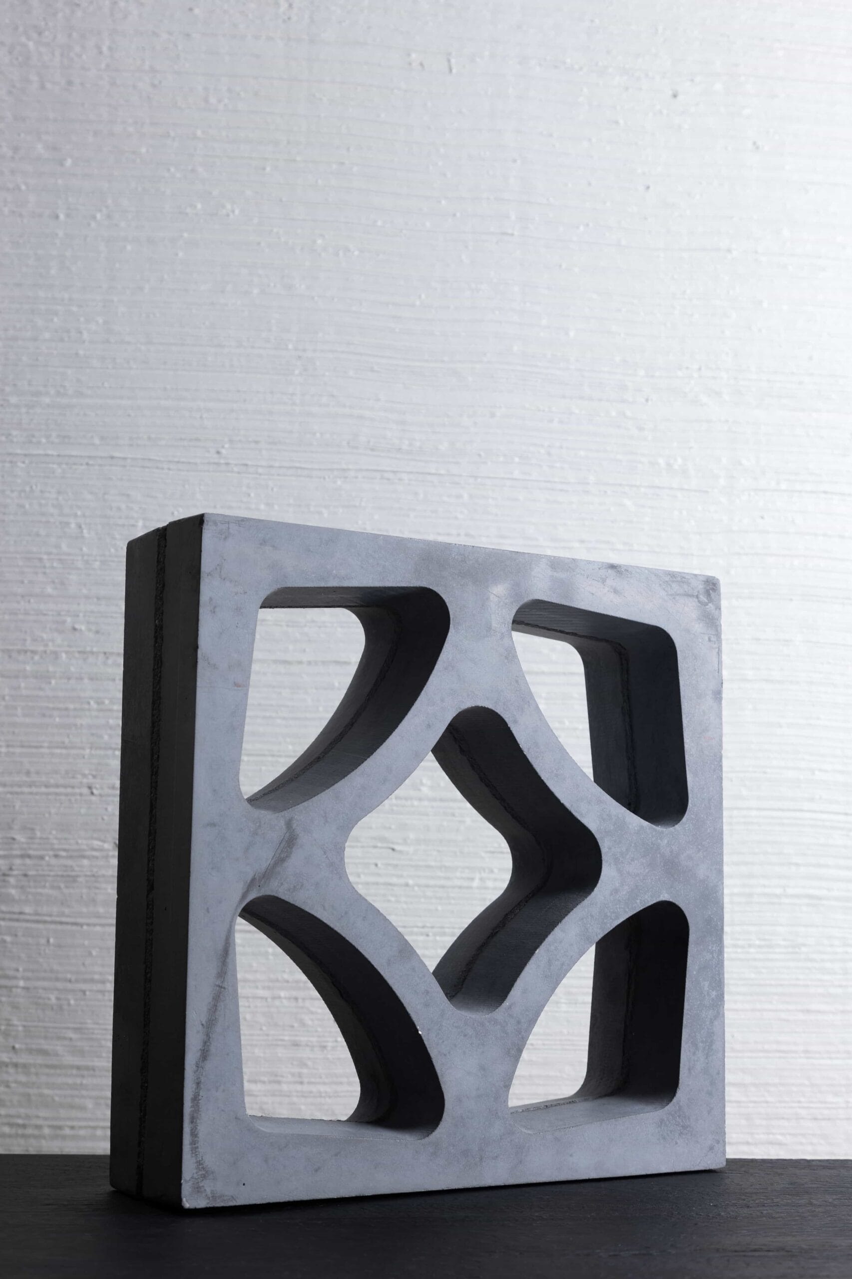 Este elemento tiene la geometría más clásica de la colección, sus formas son derivadas directamente de los orígenes de la talla en piedra y madera. Su evolución a elemento arquitectónico de 29 cm de lado permite una pieza imponente y generosa.